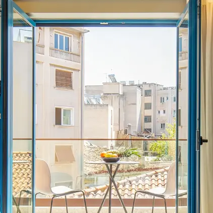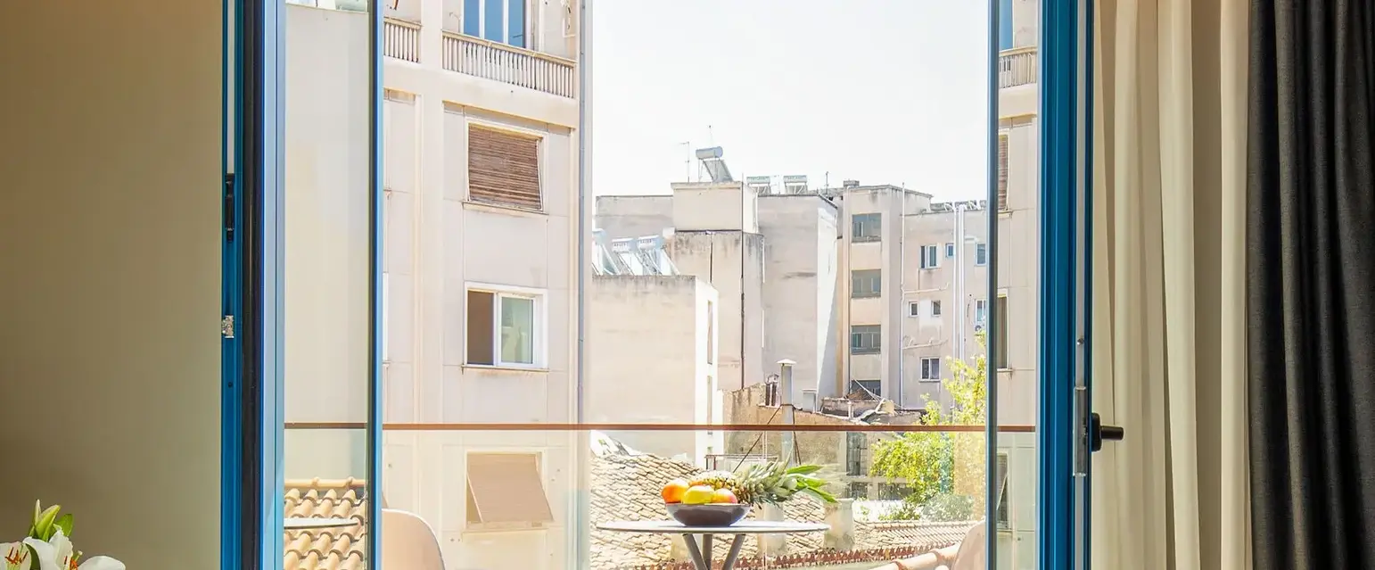 This mid-century, modernism-style property in central Athens was freshly renovated in 2019. These apartments are located on the first, second, third, fourth and fifth floors and are accessible by lift. This is a contactless property, which means there’s no front desk. You can access both the building and your space with a convenient door code, and our super-responsive online support team is here for you day and night.