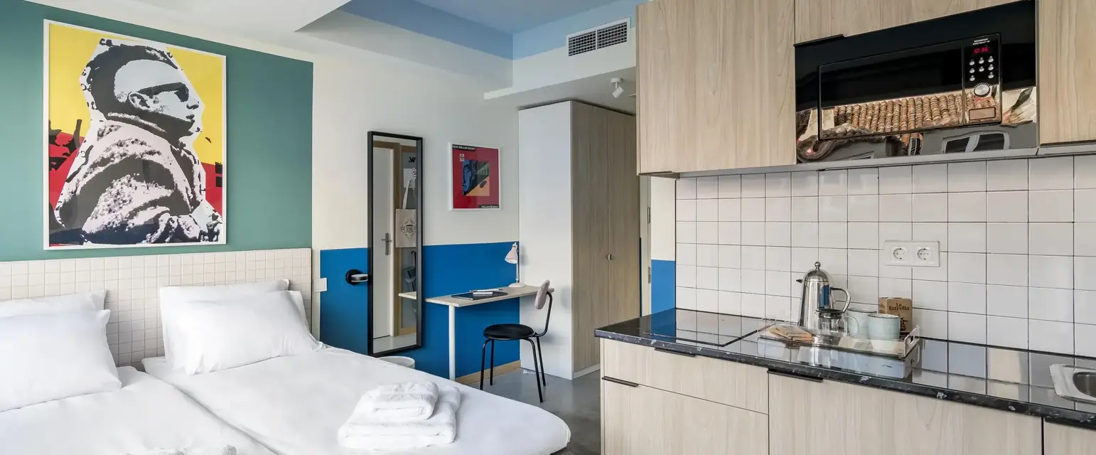Step inside and feel the freedom of Madrid’s La Movida Madrileña social movement. After the end of the oppressive Franco dictatorship in 1975, a new era of rebellious music, film, fashion and art erupted in the surrounding Malasaña neighbourhood. Bob’s very own Senior Interior Architect Camilo Torres – who has called many places in the world home, including Chueca – has hand chosen colours, textures, art, custom furniture and local elements to immerse you in this part of the area’s history.