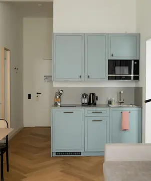 Once your check-in is complete, your unique door code will pop up on the evening before check-in day in the Guest Area under "Open Doors". That’s how you’ll access your apartment—no keys needed!