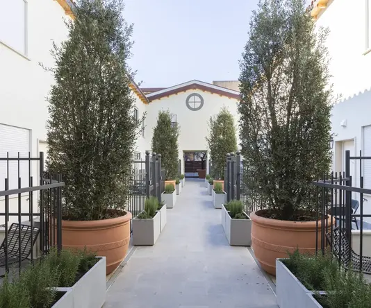 Look for the building at number 25 on Via dei Reti. The main entrance is clearly visible from the street to the right of the gates. Your door code, found in your Guest Area, will get you inside.